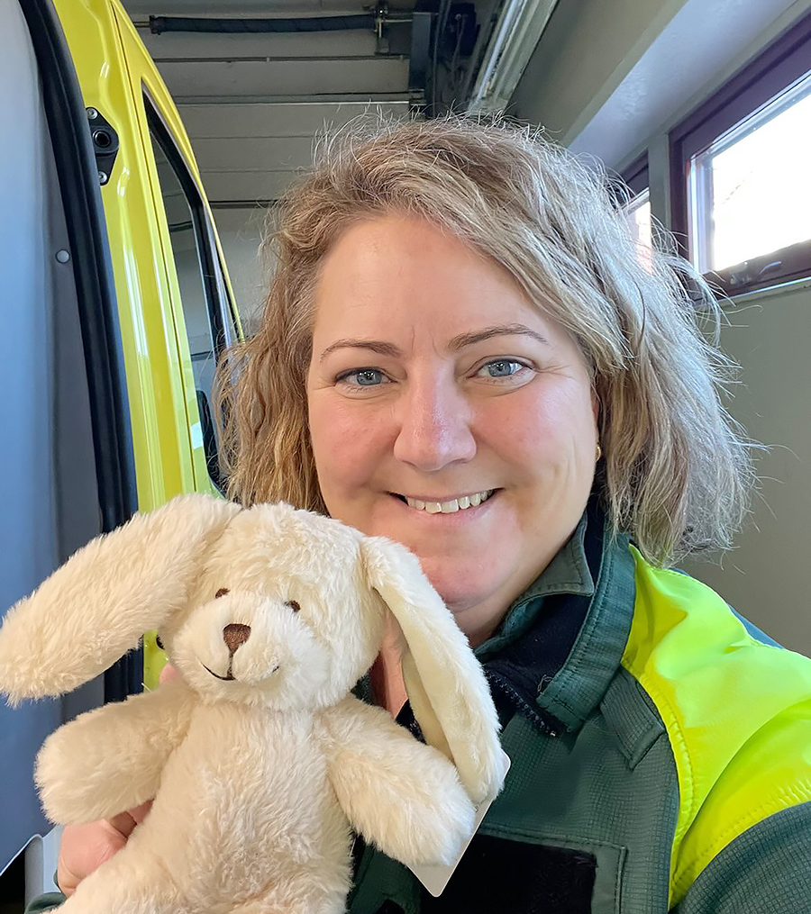 – Ja, alla barn som åker med oss får en nalle. Jag vet att nallen inger trygghet och att upplevelsen av att få en överraskning i en jobbig situation är positiv. Många gånger kan det även avdramatisera situationen som kan verka skrämmande. Ibland är ju inte mamma eller pappa på plats och barnet åker ensam med oss i ambulansen, då kan det vara skönt att få en gosig och söt nalle att hålla i och krama.