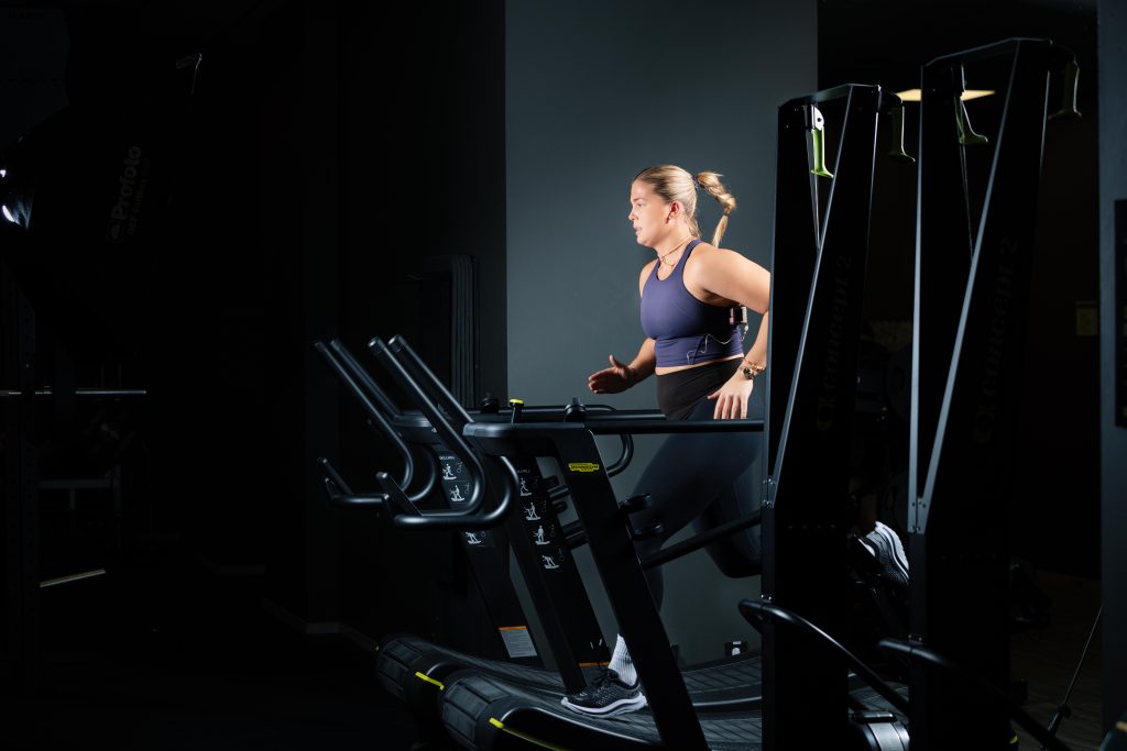 Under en normal vecka – när hon springer mycket – kan det bli tre lite längre sträckor på 10–12 kilometer, och två kortare på 5–7 kilometer. Nu, när vi pratas vid, är det inte fullt lika mycket löpning, men desto mer på gym. Det är inte helt ovanligt att hon tränar två gånger om dagen. Utslaget på en vecka snittar hon nog sju olika träningspass i veckan, uppskattar hon.