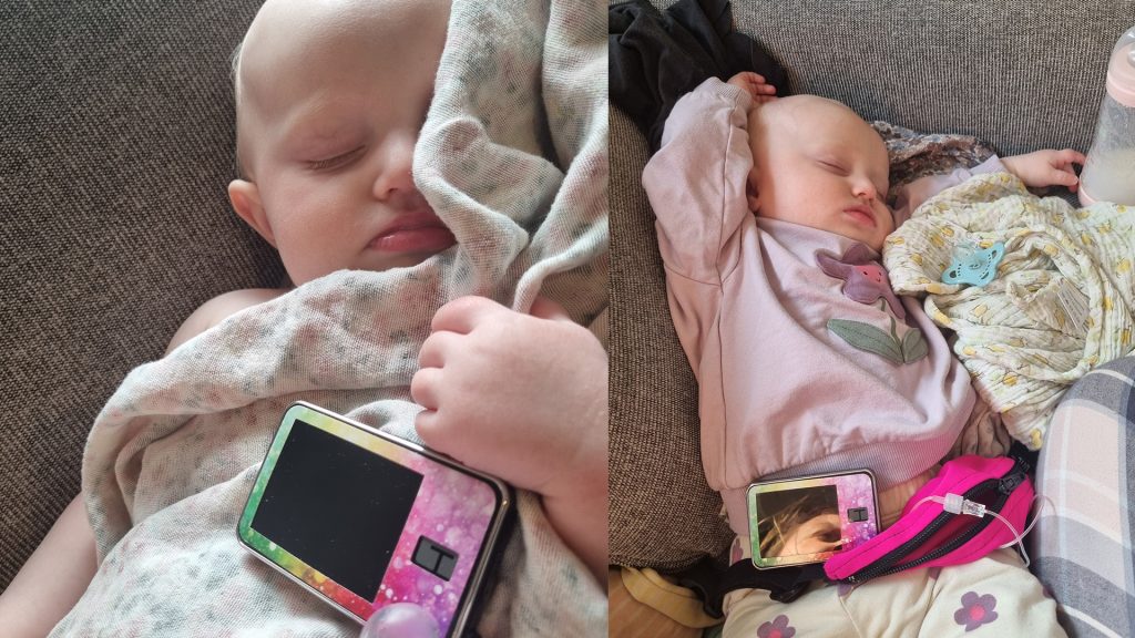 — Jag är otroligt tacksam över hur allt har fungerat från att vi blev inlagda på intensiven 24/2-25 och hela sjukhusvistelsen. Jag kan inte tacka nog för bemötandet, utbildningen, samarbetet och hur allt har funkat. Vi kom in på måndagen och låg på intensiven i tre dagar, på torsdagen satte man hennes pump och där började vårt nya heltidsjobb som Neas bukspottkörtel och livvakt.