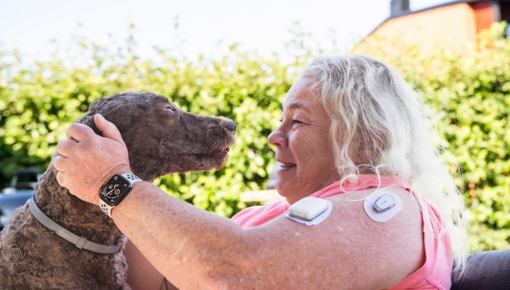 Ålder: 64 år Ålder vid insjuknande: 36 år Familj: Man, tre vuxna barn och tre hundar – varav en hund är utbildad assistanshund, men nu pensionerad. Bor: Stenkullen Medicinsk utrustning: Omnipod 5, tidigare Tandem t-slim HbA1c: 50 senast, det är jag jättenöjd med. Det brukar oftast ligga mellan 48-52.